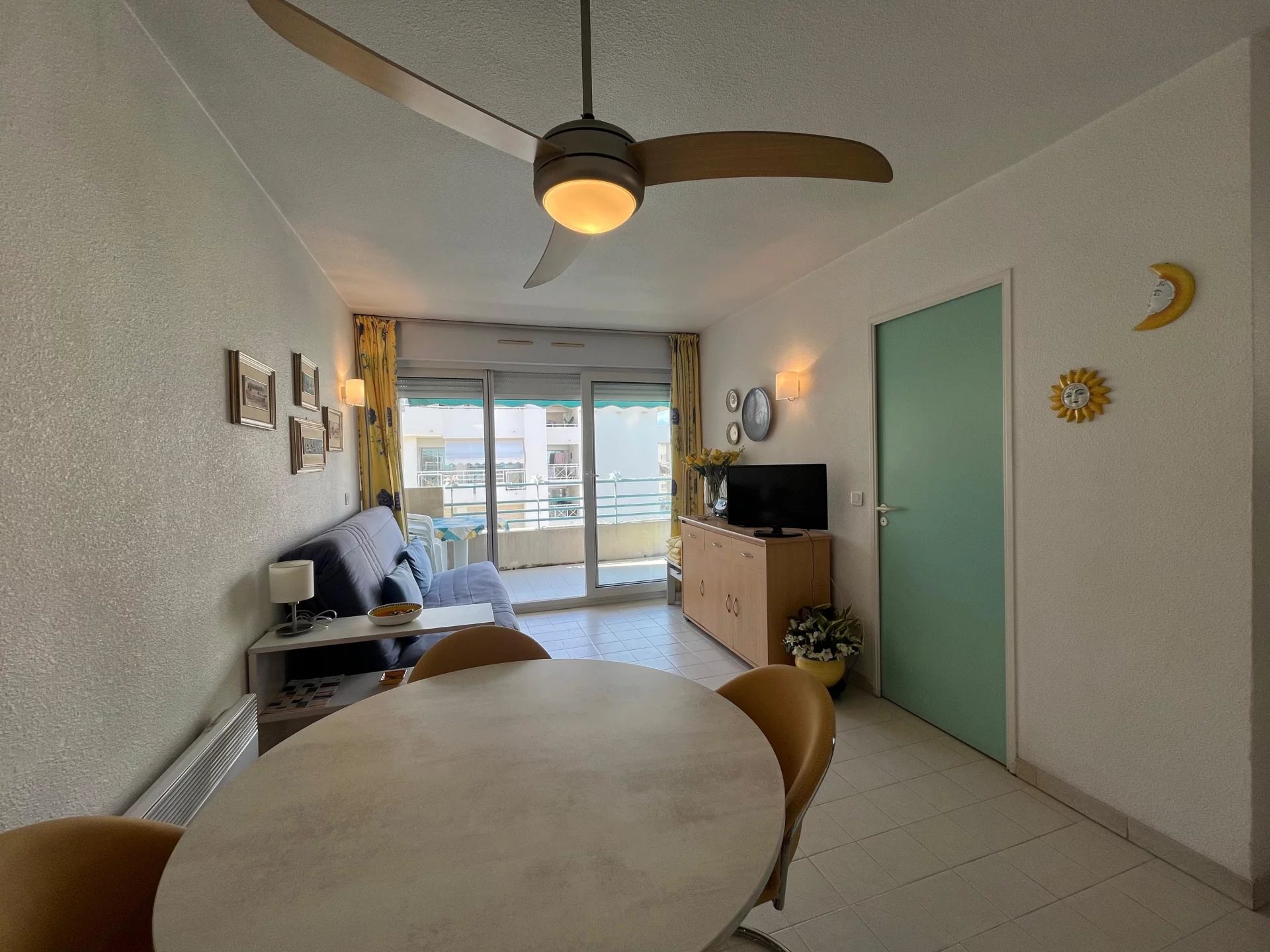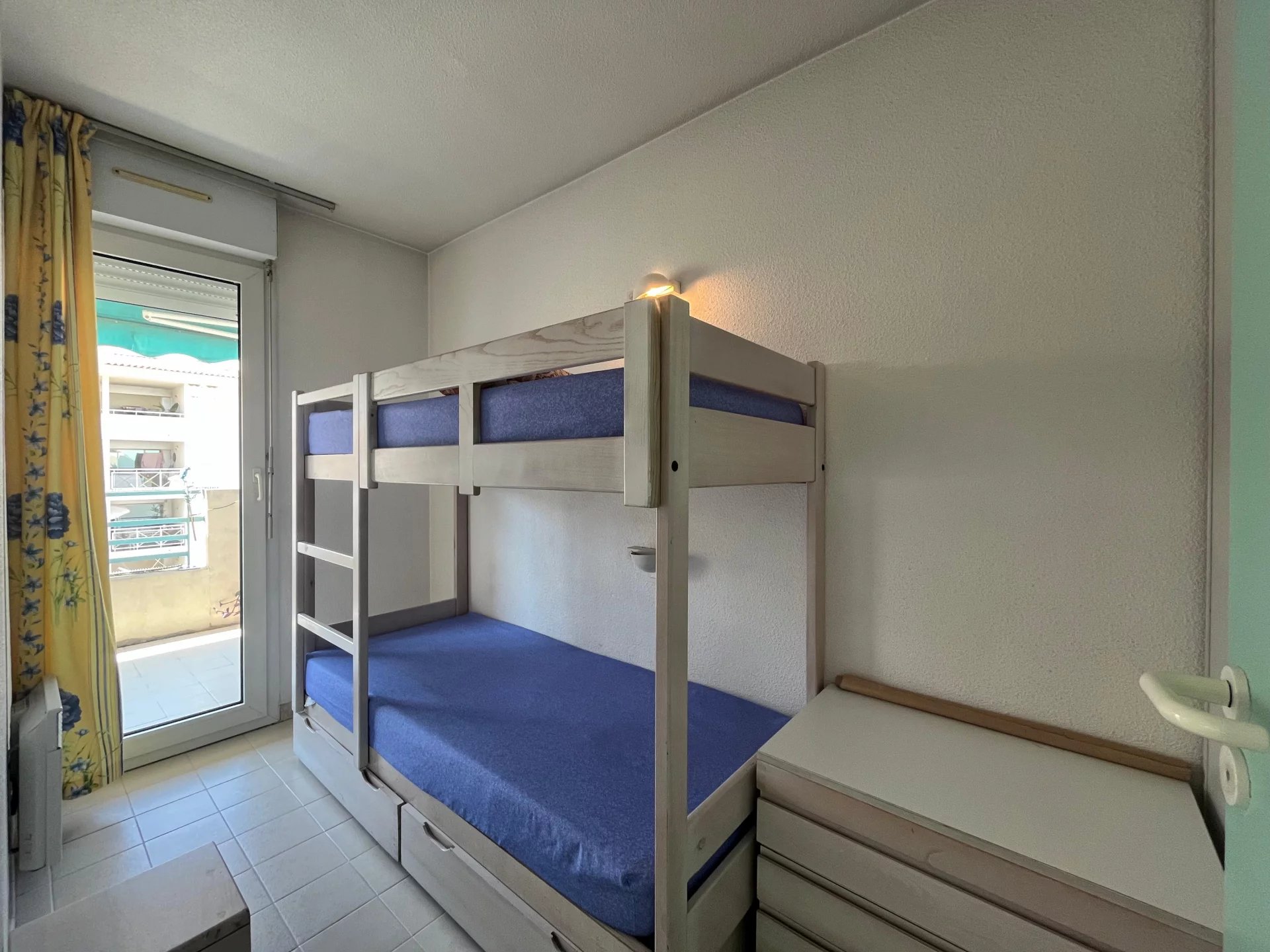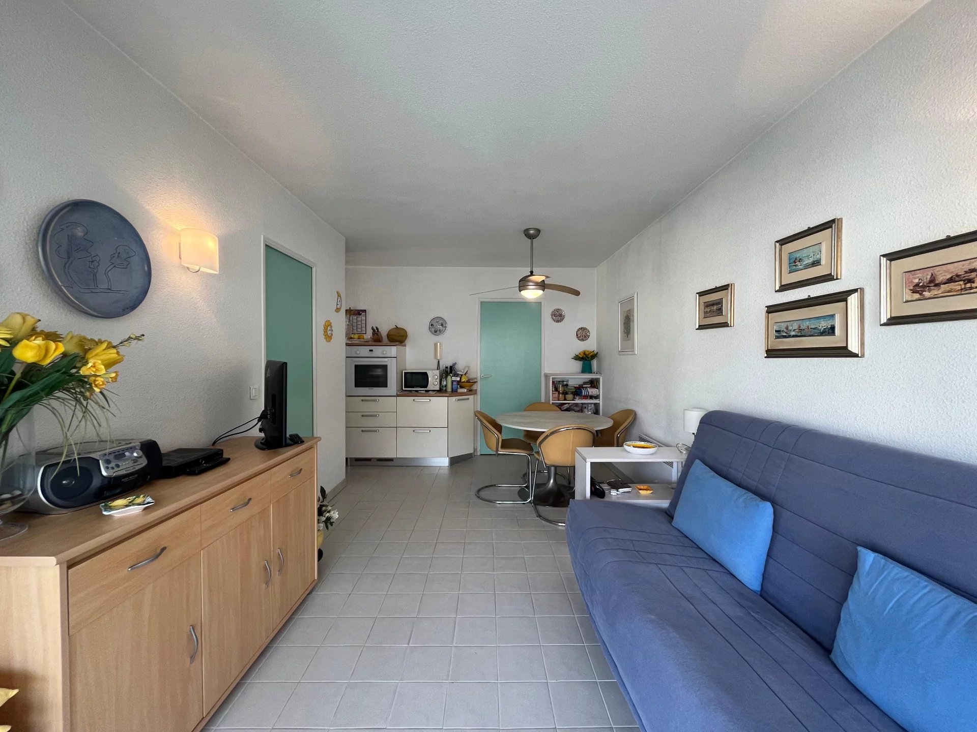 Grand studio situé en étage élevé, comprenant une entrée avec placard, une salle de bains, WC indépendant, un séjour lumineux avec cuisine américaine et un coin nuit. Vous profiterez également d’une belle terrasse avec aperçu mer. La résidence est agrémentée d’une agréable piscine, proche de toutes les commodités et à seulement 5 minutes à pied de la mer.